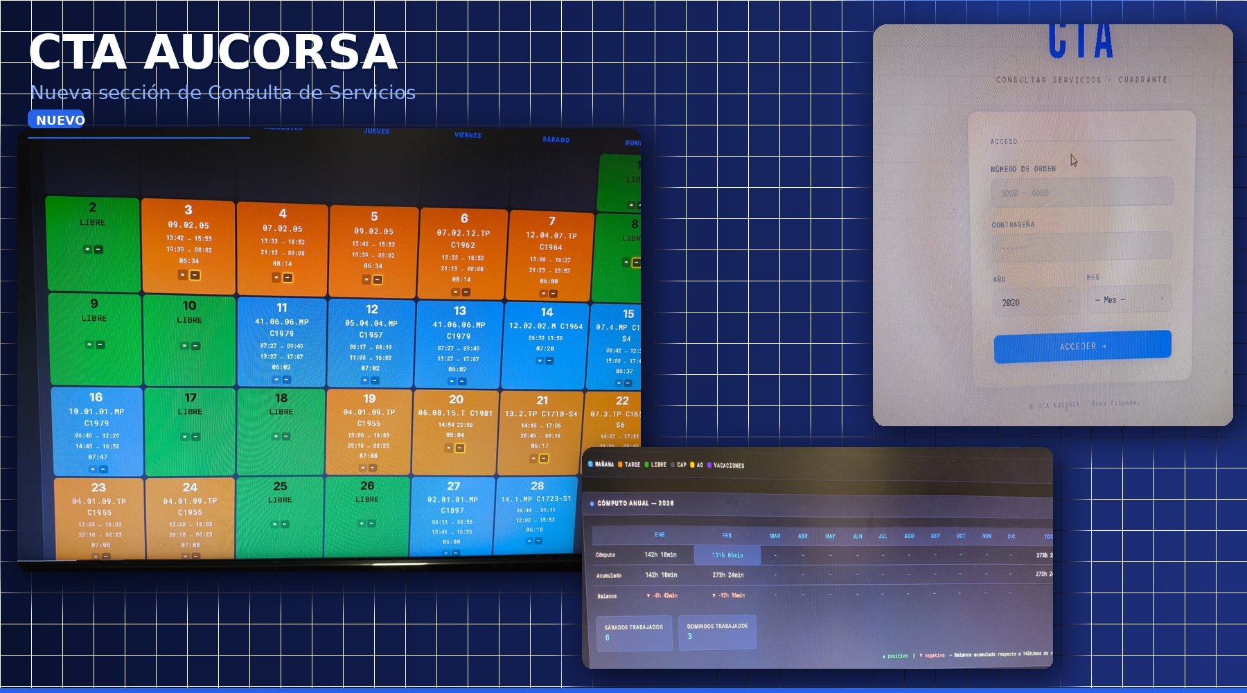 Hemos renovado por completo el visualizador de cuadrante mensual. Ahora puedes consultar tus servicios, horarios y cómputo de horas de una forma más clara, rápida y cómoda desde cualquier…